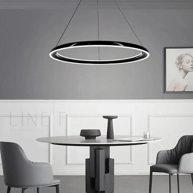 Сучасна підвісна люстра із чорним кільцем 80 см | Line F | Арт. MJ341-800 BK