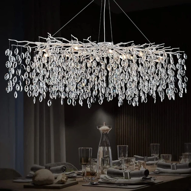 Видовжена срібна люстра DIAMINA з хрустальним камінням у корпусі 150 см | Арт. 33007-L1500*400 CH | Line F