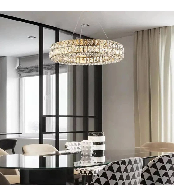 Кільцева кришталева люстра в хромі на 3 яруси 80+60+40 см