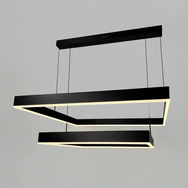 Чорна люстра з двома підвісними квадратами 60 та 80 см