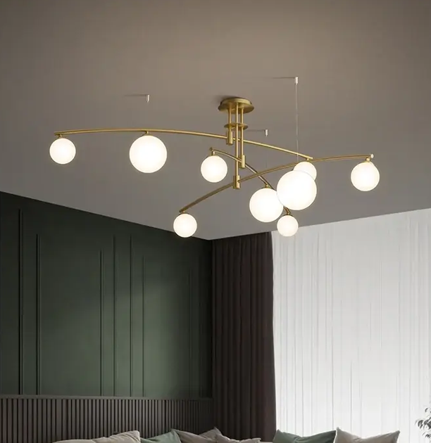 Світлодіодна люстра Перлина 8818 Золотиста 9 плафонів світильник стельовий для дому та офісу освітлення (VIL-O33P)