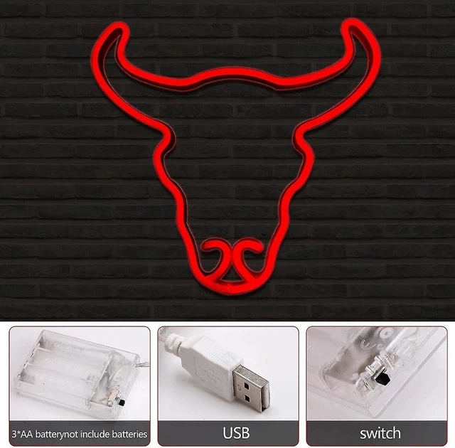 Настінний неоновий світильник нічник Бик / Bull Decoration Lamp (29х31 см, USB, 5 В, 3хАА, лампа) - Червоний