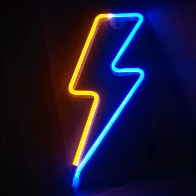 Настінний неоновий світильник нічник Блискавка Decoration Lamp (34х14 см, USB, 5 В, 3хАА, лампа) - Жовто блакитний
