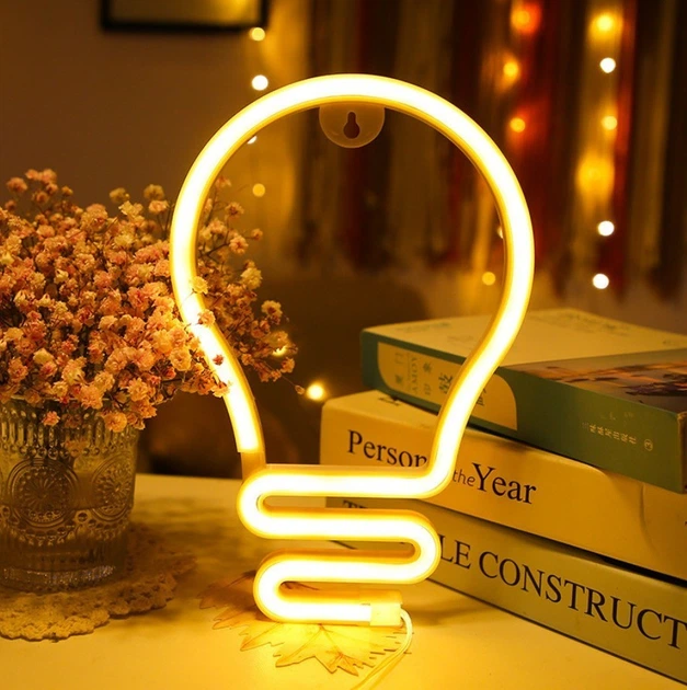 Настінний неоновий світильник нічник Лампочка Decoration Lamp (35х16 см, USB, 5 В, 3хАА, лампа) - Жовта
