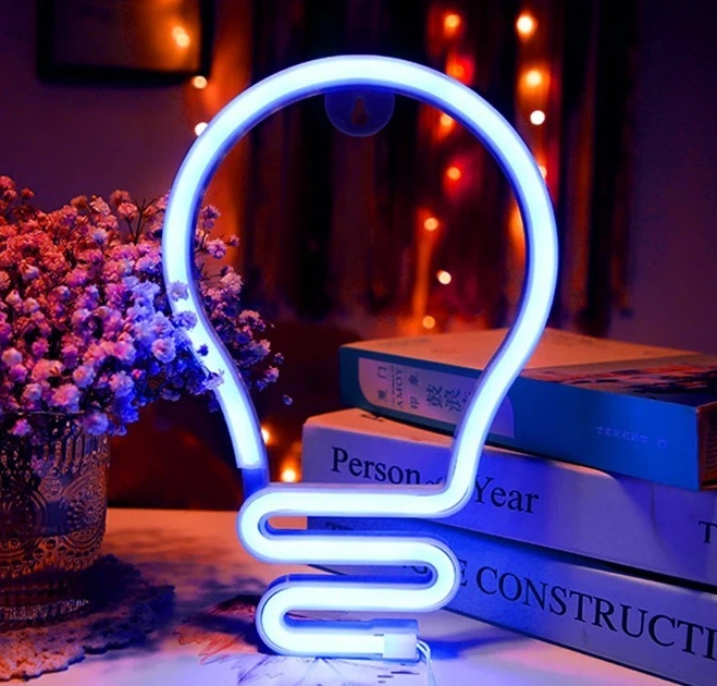 Настінний неоновий світильник нічник Лампочка Decoration Lamp (26х17 см, USB, 5 В, 3хАА, лампа) - Синя