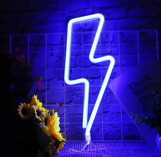 Настінний неоновий світильник нічник Блискавка Decoration Lamp (34х14 см, USB, 5 В, 3хАА, лампа) - Синя