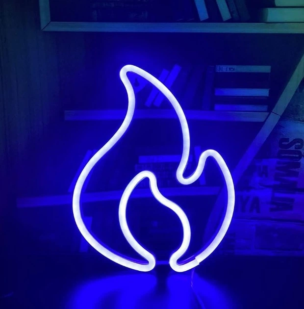 Настінний неоновий світильник нічник Полум'я - Вогонь Decoration Lamp (31х23 см, USB, 5 В, 3хАА, лампа) - Синій