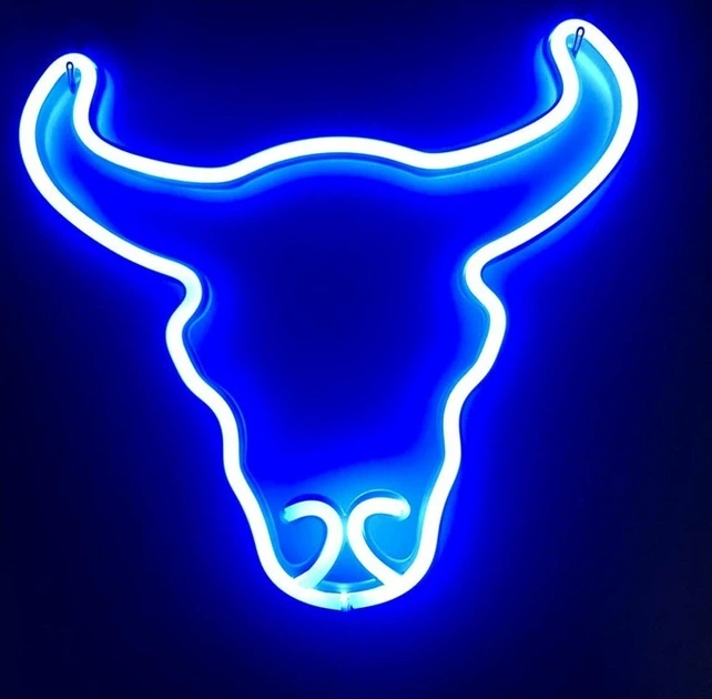 Настінний неоновий світильник нічник Бик / Bull Decoration Lamp (29х31 см, USB, 5 В, 3хАА, лампа) - Синій