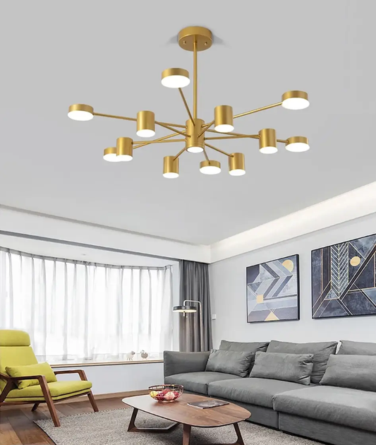 Світлодіодна люстра Меркурій 8911 Золота 12 плафонів для дому та офісу світильник стельовий LED економічний (VIL-O33P)
