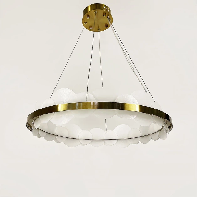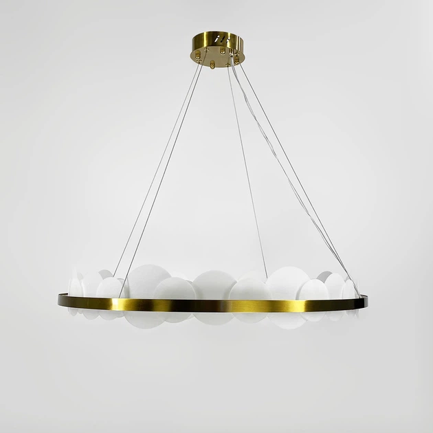 Підвісна люстра з латунним кільцем та матовими кругами 80 см