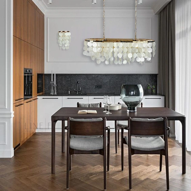 Подовжена золота люстра ATHELIA з перламутровими пластинами Line F | Арт. 1537-800*300 GD