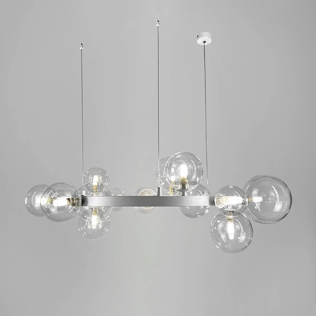 Подовжена срібна люстра ATHELIA з перламутровими пластинами | Line F | Арт. 1537-800*300 CH