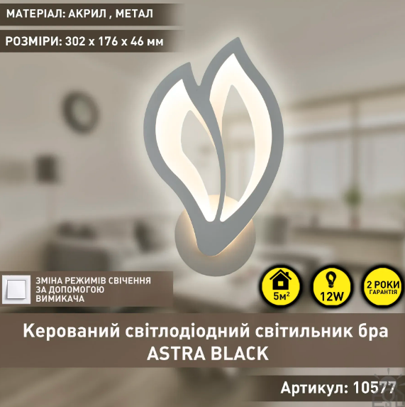 Настінний світлодіодний світильник Esllse бра ASTRA 12W 302x176x46мм чорний