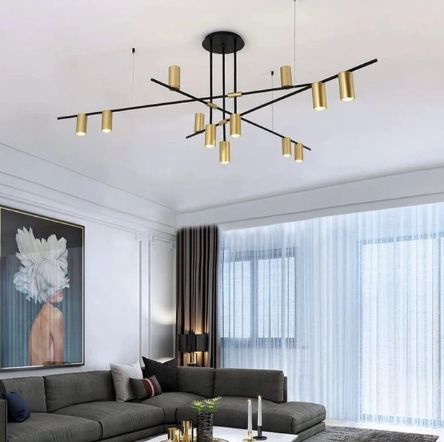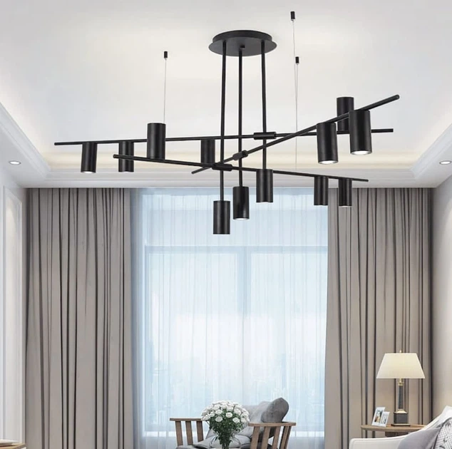 Сучасна чорна люстра на 12 латунних плафонів-спотів |