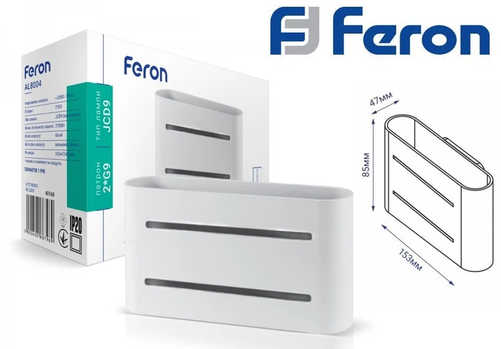 Настінний накладний світильник Feron AL8004 G-9*2 білий 153х47х85 мм