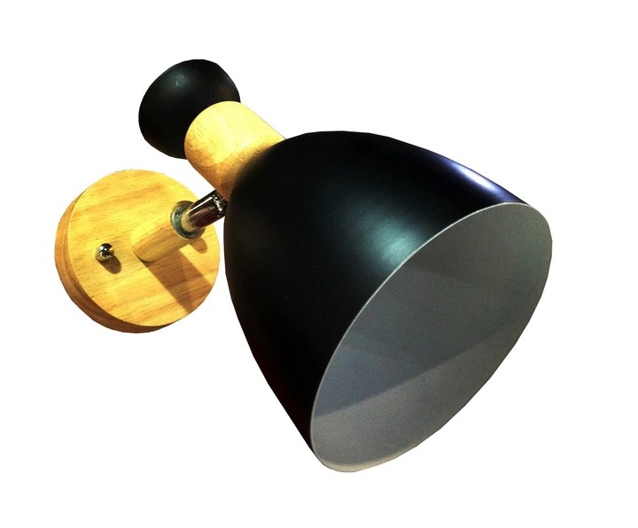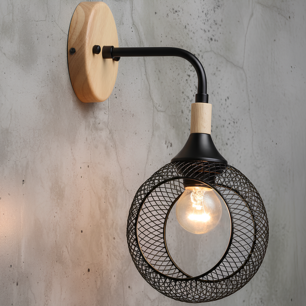 Настінне бра Valeso B N6620/1W з одним плафоном-сіткою під лампу E27 чорний металевий корпус із дерев'яними елементами