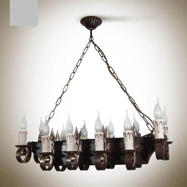 Люстра дерев'яна на ланцюгах 12 лампова шинка в бар, на кухню, в заміський будинок 30088