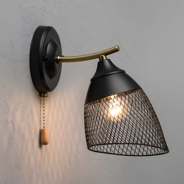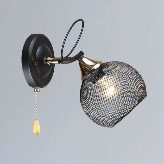 Настінне бра Valeso B K2264/1W BK+COP з металевим сітчастим плафоном під лампу E27 у чорно-мідному кольорі