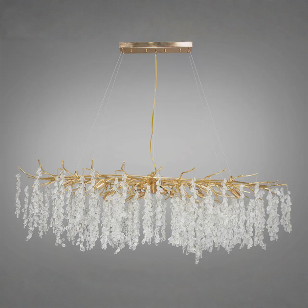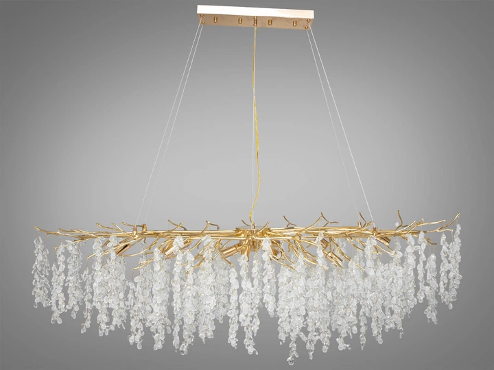 Кришталева люстра Diasha "Гліцинія" витягнутої форми для зали, колір золото 603-L1500GD-LS