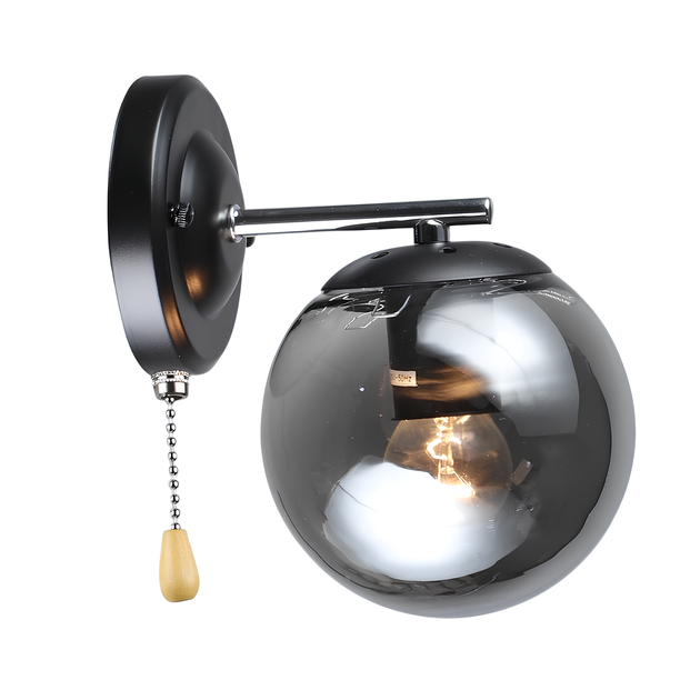 Настінне бра Valeso K2307/1W з кулястим затемненим плафоном на 1 лампу Е27 корпус у чорно-хромовому кольорі