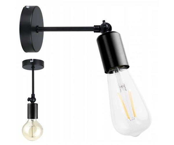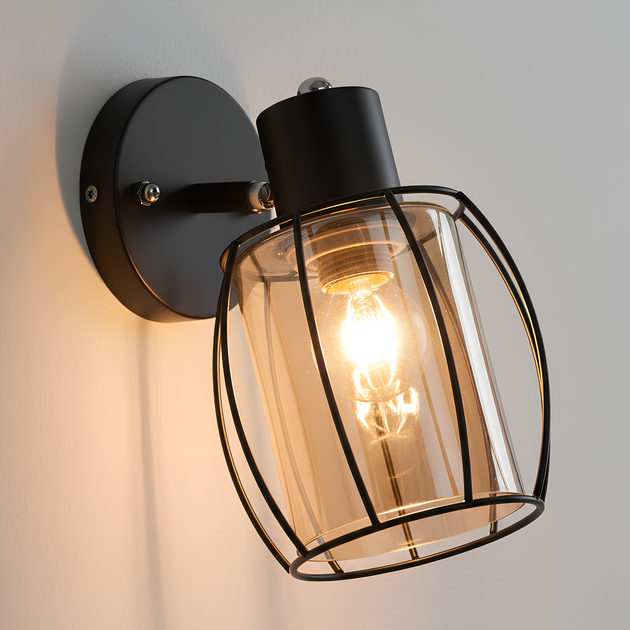 Настінне бра VALESO B-91180M/1 зі скляним регульованим плафоном під лампу E27 на чорно-хромовому корпусі