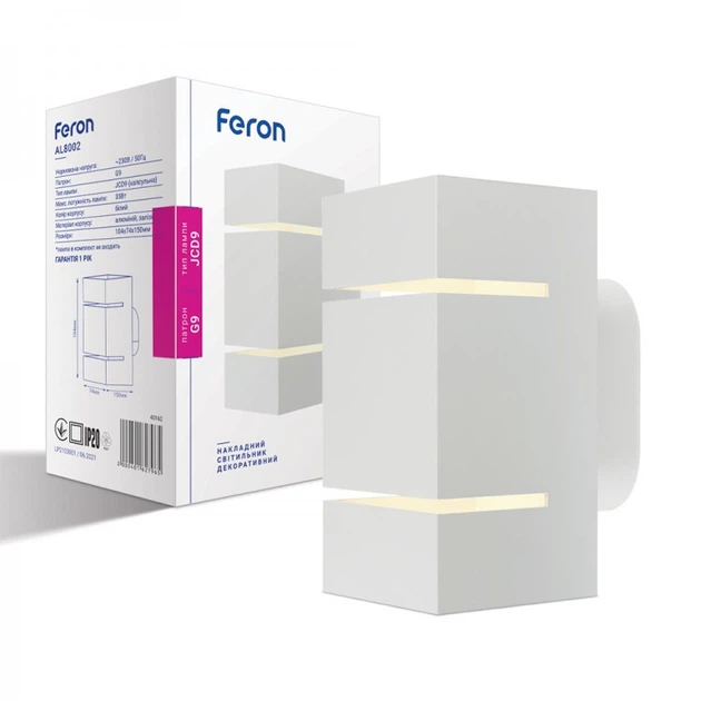 Настінний світильник декоративний білий G9 (100*70*148мм) AL8003 FERON