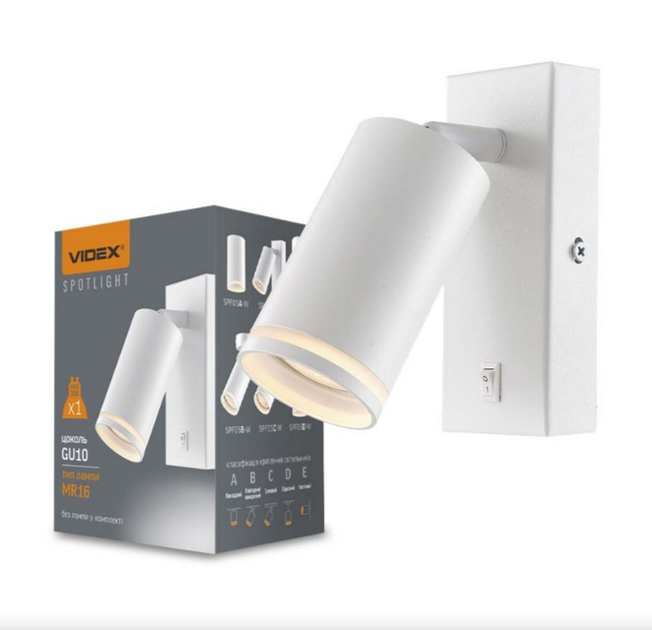 Світильник VIDEX під лампу GU10 настінний з кнопкою білий (VL-SPF05E-W)
