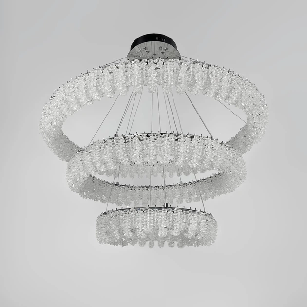 Кільцева кришталева люстра в хромі на 3 яруси 80+60+40 см