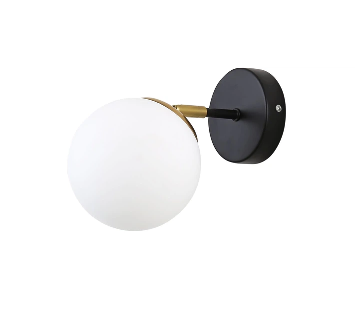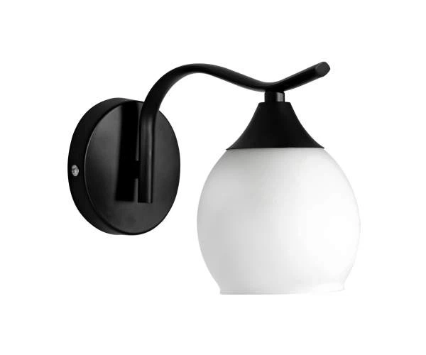 Настінне бра Valeso B N1435/1W з білим матовим плафоном під лампу Е27 на чорній металевій основі