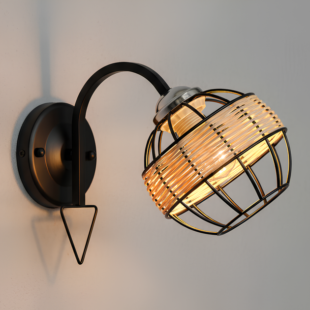 Настінне бра VALESO B-91179A/1 з металевим плафоном та ротанговими елементами під лампу Е27 корпус чорно-хромовий