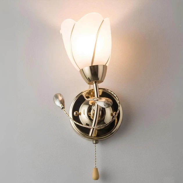 Настінне бра Valeso B N0282/1W зі скляним плафоном під лампу E27 на золотому корпусі