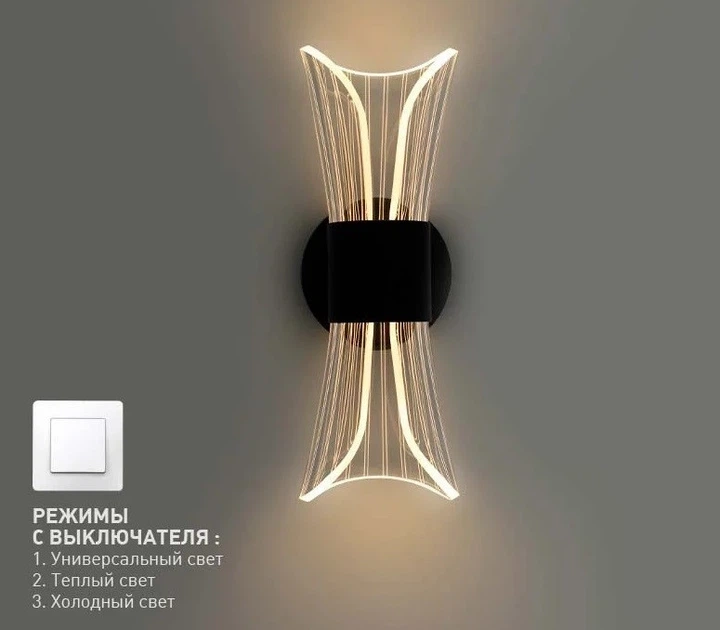 Настінний світлодіодний світильник Esllse бра DIO 12W 2Y-ON/OFF-230х80х95-BLACK/CLEAR-220-IP20