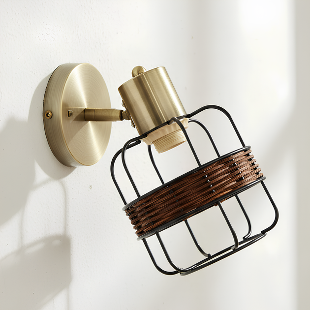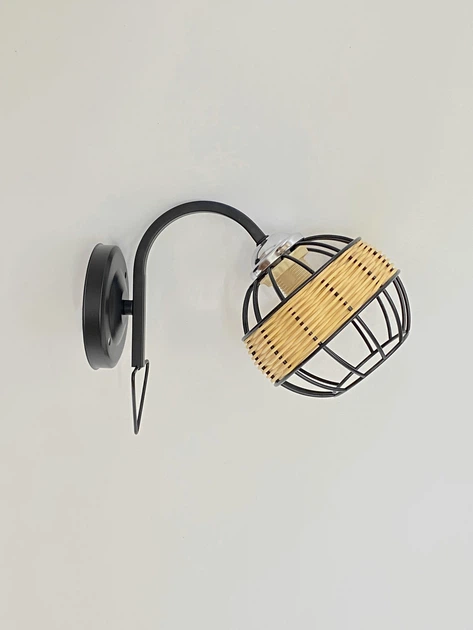 Бра настінне VALESO B-91180J/1 з металевим поворотним плафоном з ротангом під лампу E27 на бронзовому корпусі