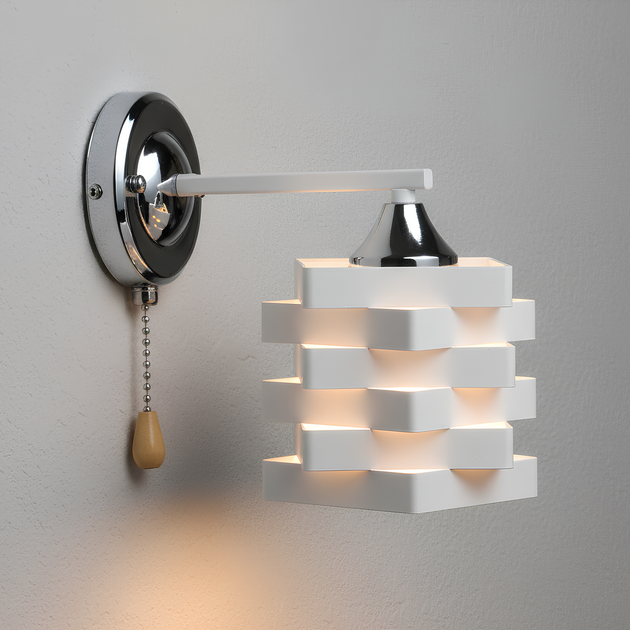 Настінне бра Sirius B A4300/1W WT+CR з металевим плафоном під лампу E27 у біло-хромовому кольорі