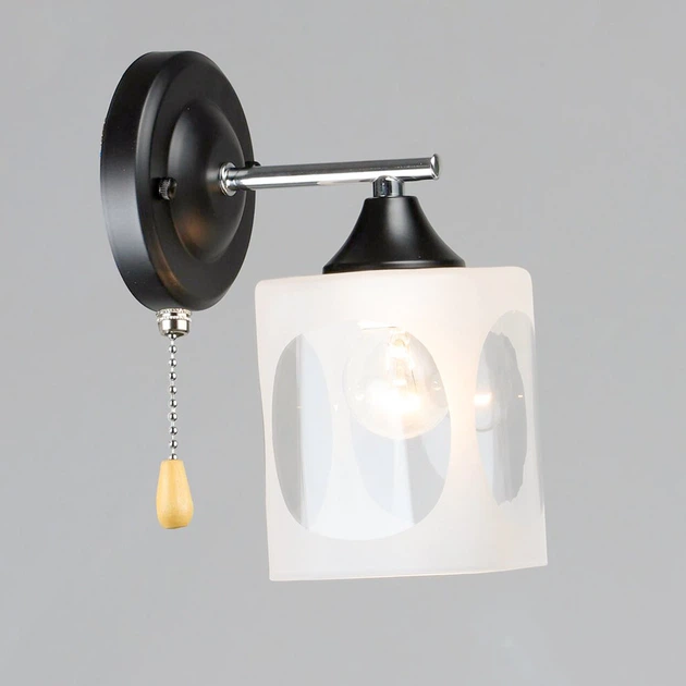 Світильник настінний Бра Light House SRS-20128/1W CH+BK чорний + хром, білий плафон + прозорий
