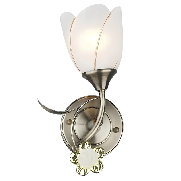 Настінне бра Sirius B N1508/1W AB зі скляним плафоном у формі квітки під лампу Е27 на бронзовій основі