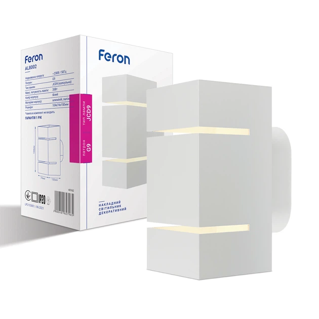 Настінний накладний світлодіодний світильник під лампу G9 Feron AL8002 Білий 40162