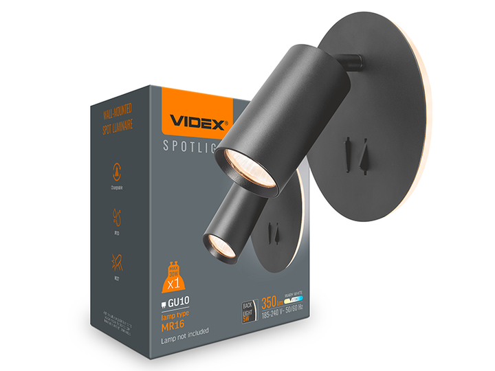 Настінний світильник VIDEX GU10 з підсвіткою та кнопкою, чорний (VL-SPF24E-B)
