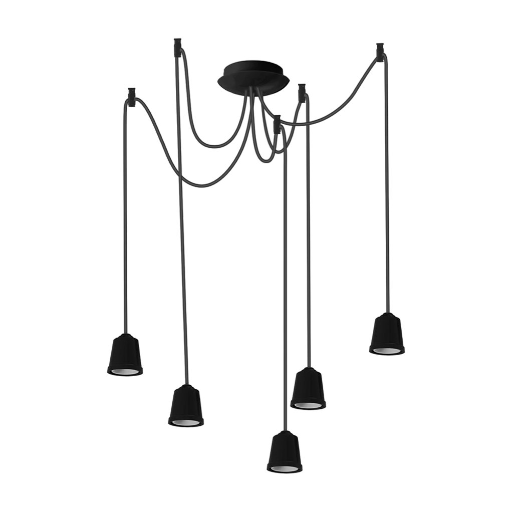 Бренд: Erka; Кількість лампочок,шт: 5; Колір основи: Чорний; Колір плафону: Чорний; Країна-виробник: Україна; Кріплення на гачок: Ні; Лампочка в комплекті: Ні; Максимальна потужність світильника (загальна), Вт: 350; Матеріал основи: Пластик; Матеріал плафону: Пластик; Новинка: Ні; Площа освітлення, м.кв.: >10; Стиль: Дизайнерський; Технологія: З патроном; Цоколь: Е27