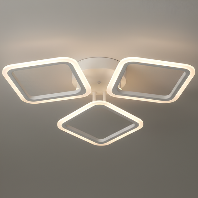 Світлодіодна стельова люстра з пультом 66W Valeso G 2929/3BIG WT з трьома квадратними акриловими плафонами 3000K–6500K біла