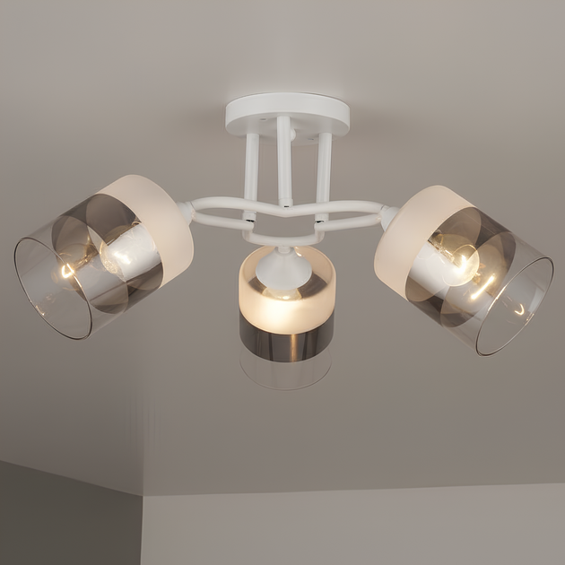 Стельова люстра Sirius B A3420/3 WT із трьома скляними плафонами під лампи E27 на білому металевому каркасі