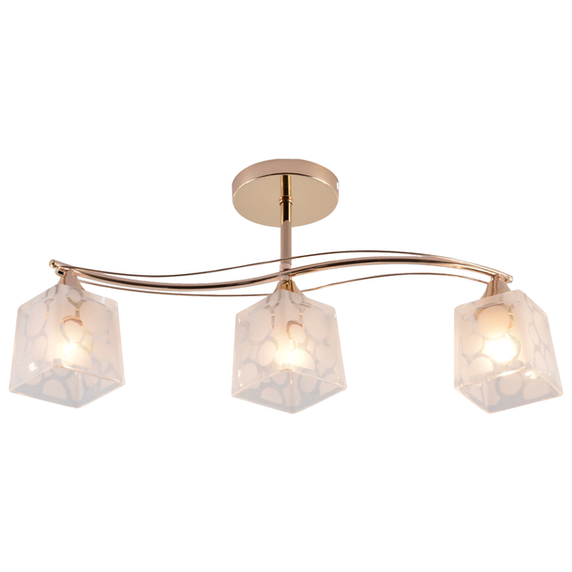 Стельова люстра Sirius 19662-3 із трьома скляними сірими плафонами під лампи E27 на золотому каркасі