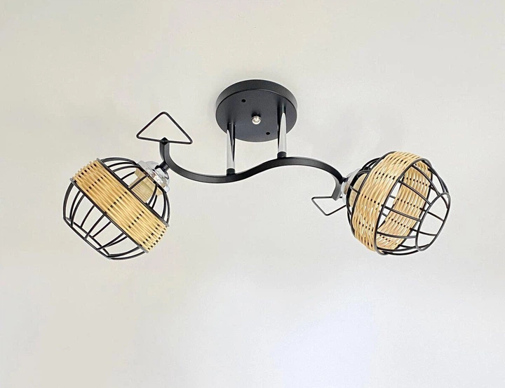 Стельова люстра на 2 плафони 91179A/2 чорний+хром