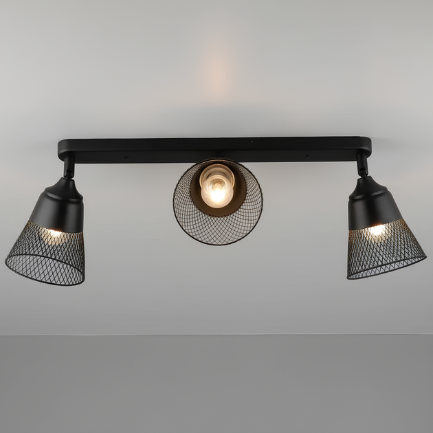 Світильник-спот стельовий Valeso B K2290/3 BK з трьома сітчастими плафонами регульованими під лампи Е27 металевий чорного ко