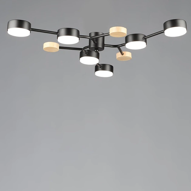 Люстра стельова Light House SRS-20353/6 BK+WOOD під лампи GX53 чорна + дерево