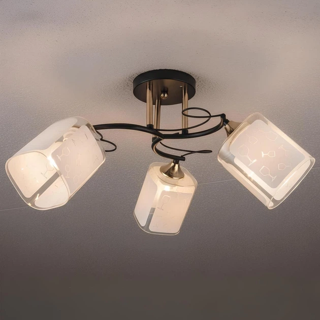 Люстра стельова MSK Electric Sakura на три плафони під лампи Е27 чорна NL 16510-3 BK