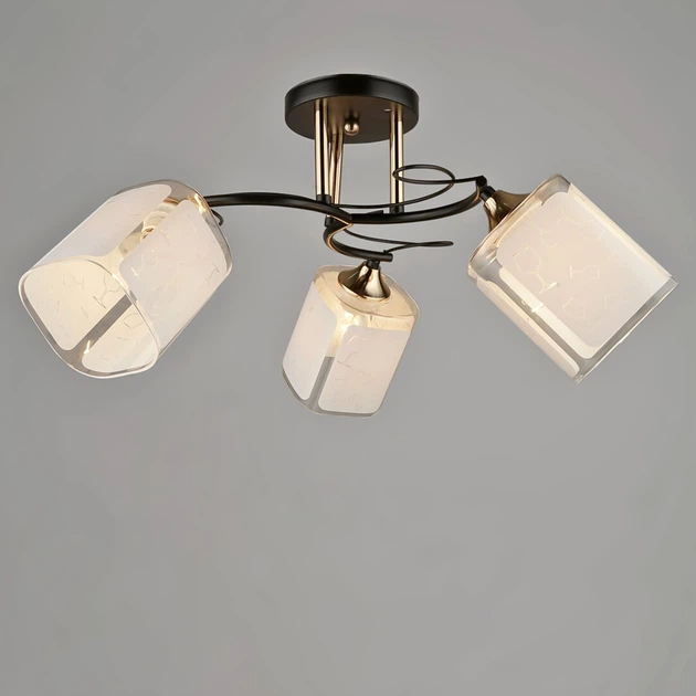 Люстра стельова Light House SRS-19768/3 BK+FGD чорна + золото, білий плафон з прозорим