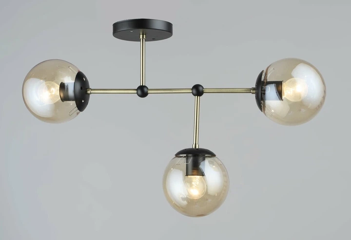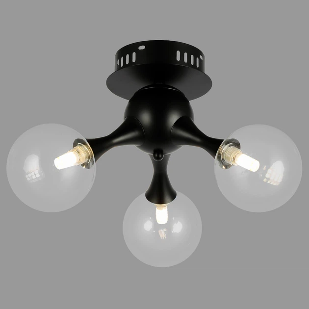 Стельова люстра чорна "Молекула" на 3 лампи (52-9817-3 BK+CL)