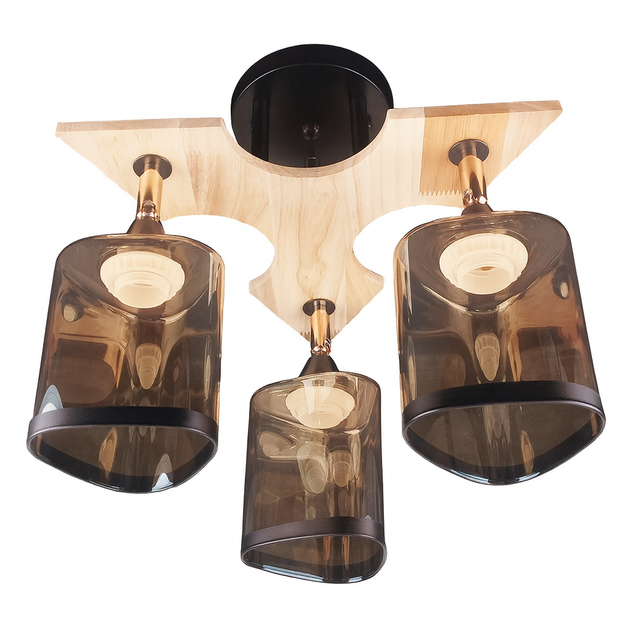 Люстра стельова поворотна чорна з дерев’яною основою та скляними плафонами на 3 лампи Е27 Sneha (995172)