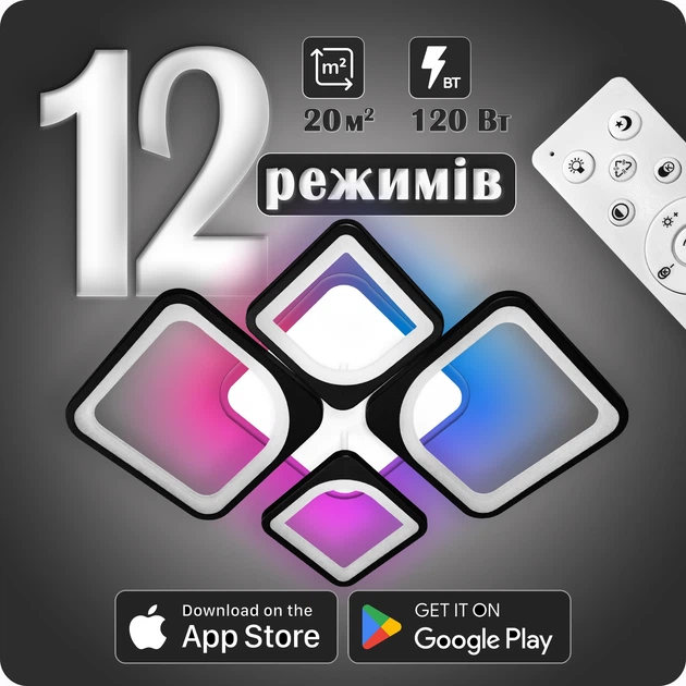 Люстра світлодіодна 517 Light 3color з пультом 120Вт Чорний (01673)